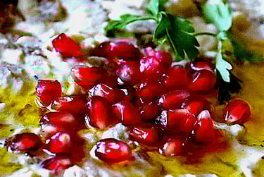 coriander, pomegranate molasses, extra virgin olive oil, salt, black and cayenne pepper.