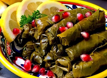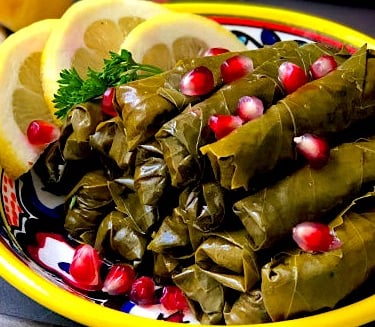 Vine leaves, stuffed with rice, chickpeas, parsley, onion, spring onion, fresh mint, tomato, extra