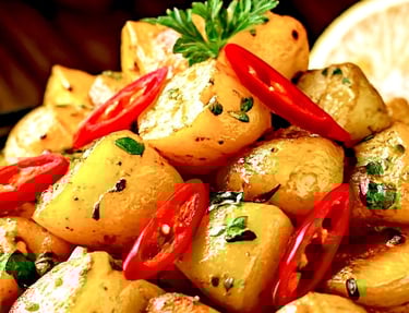 Our Batata Harra is made, using the freshest of ingredients. I am made of potato, garlic, fresh